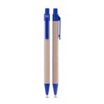 azul de 1,0 mm, com corpo em papelão, acionamento por clique e detalhes em plástico.