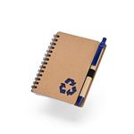 Acompanha uma caneta esferográfica de carga azul de 1,0 mm com corpo em papelão