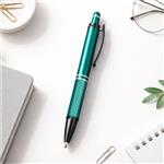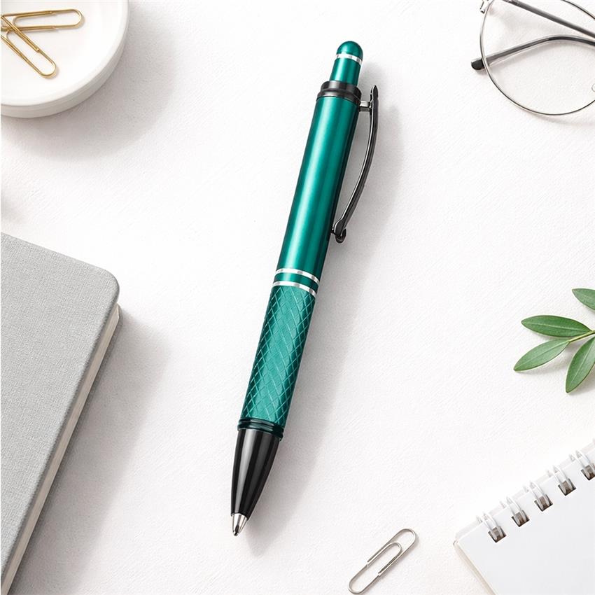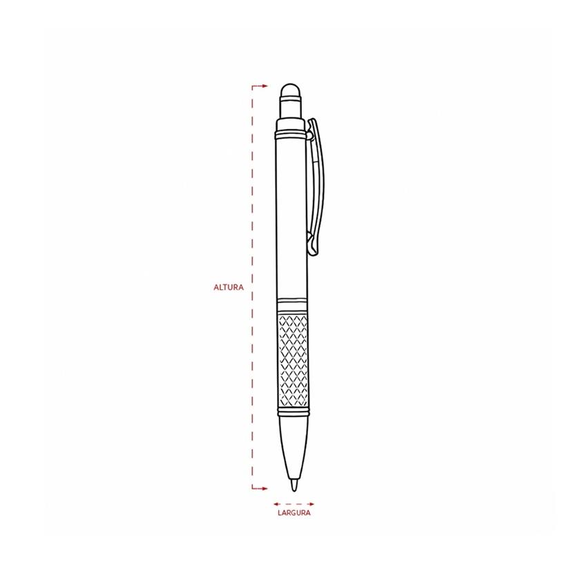 Caneta metálica com textura próximo à ponta,