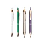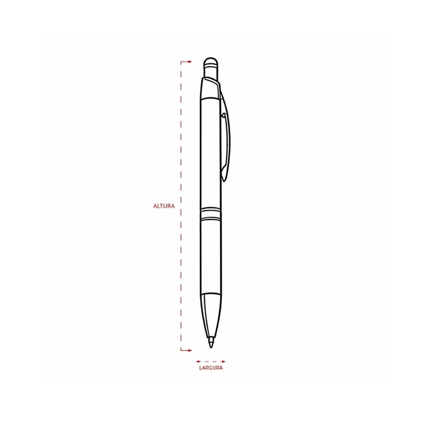Caneta em metal com detalhe emborrachado no topo para a interação com