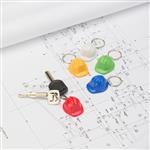 Um chaveiro em formato de capacete de segurança pensado para oferecer