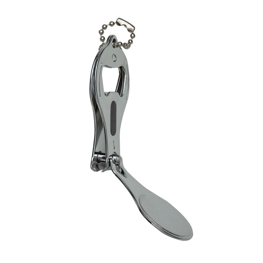 Chaveiro metal 3 em 1: abridor, cortador e lixa.
