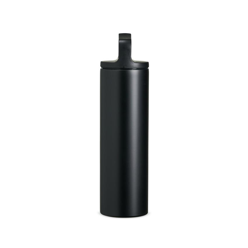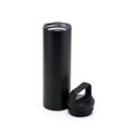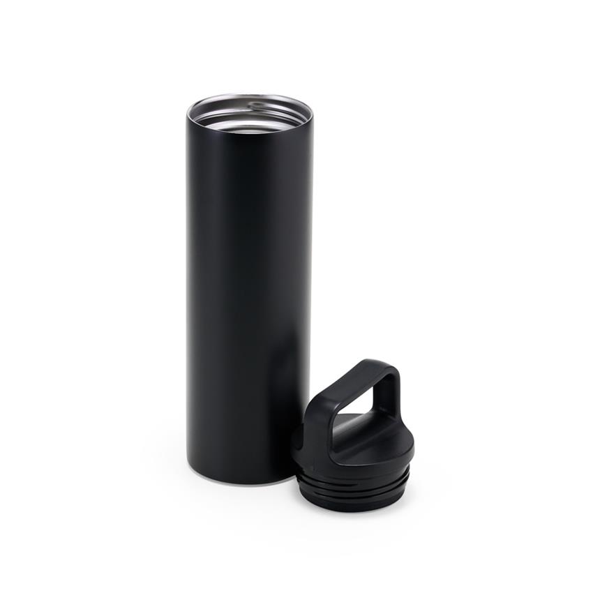 Garrafa térmica em inox, com parede dupla e capacidade de 600ml.