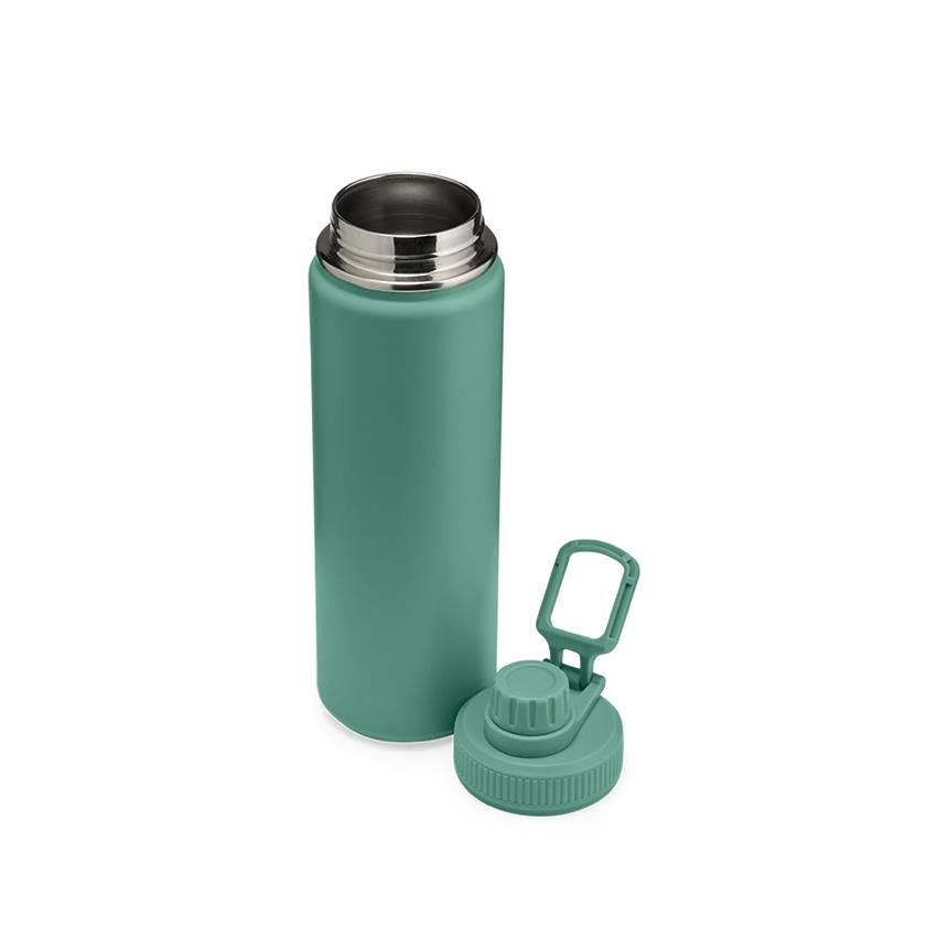 Garrafa térmica feita em inox com pintura eletrostática e capacidade de até 750ml.