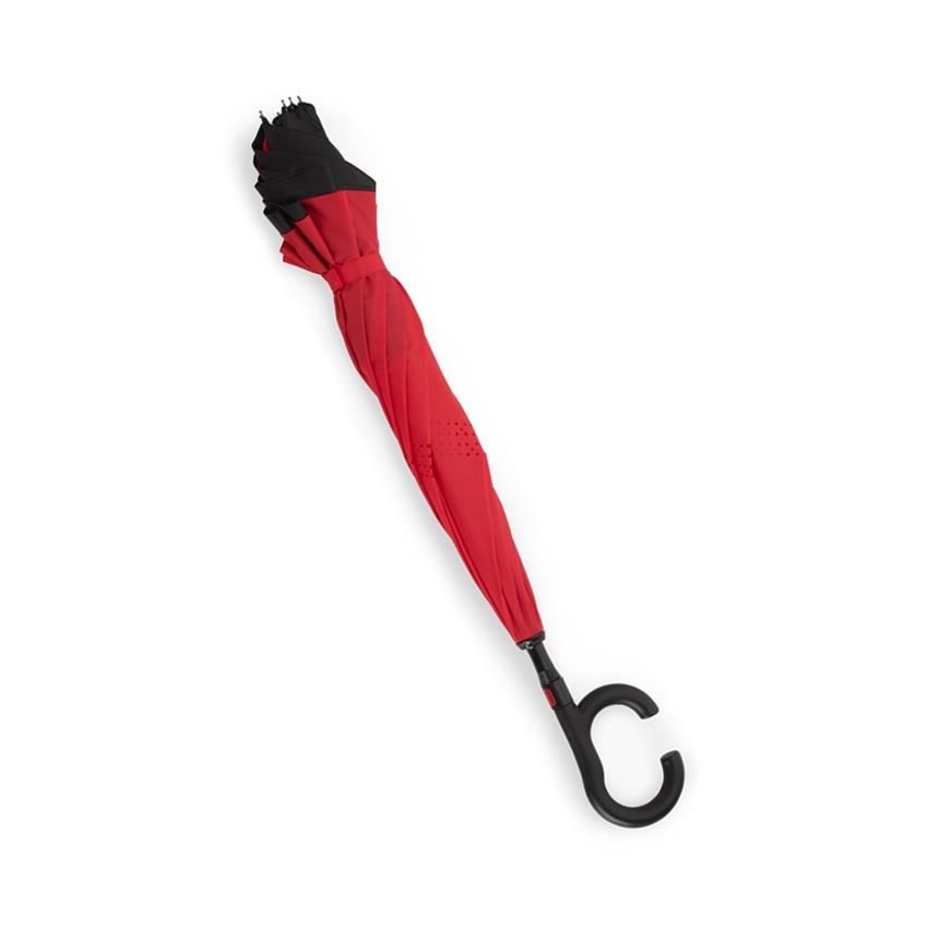 Guarda-chuva invertido com forro interno. Tecido ponge chinês e seda poliéster,