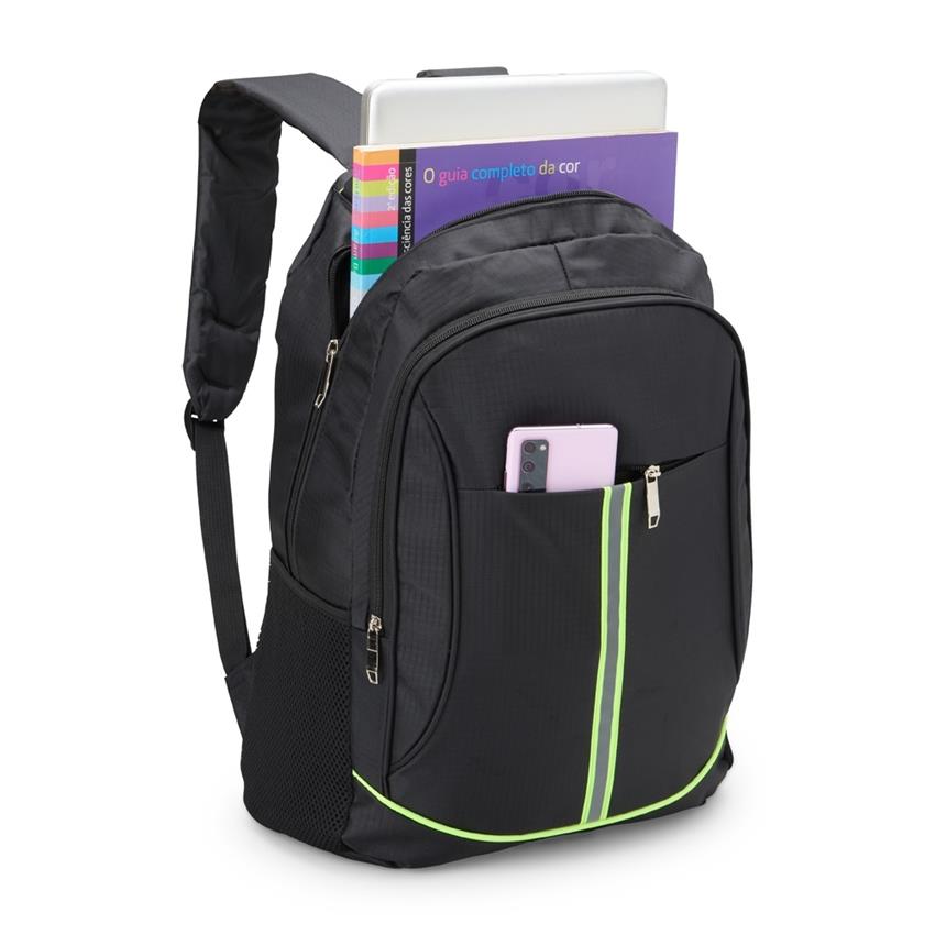 principal com bolso para notebook de 15,6. A mochila possui