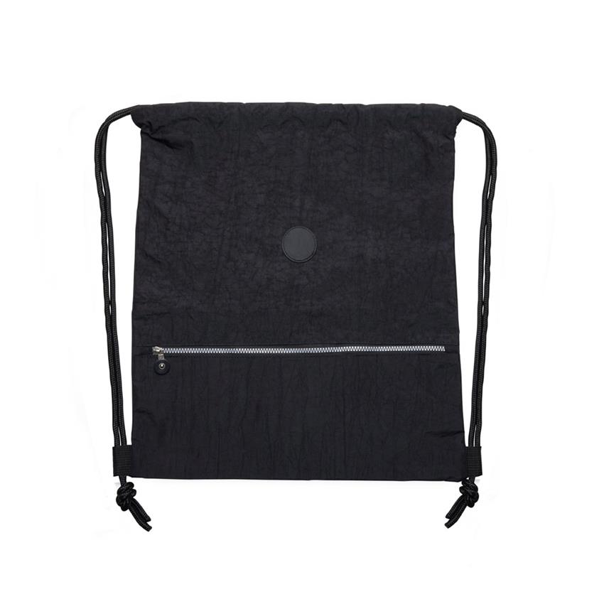 Mochila saco confeccionada em nylon impermeável e alças de nylon.