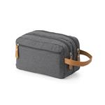 Nécessaire confeccionada em poliéster, com detalhes em couro sintético.