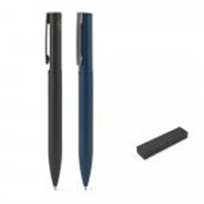 Esferográfica elegante em metal 60% reciclado. A esferográfica tem um clipe,